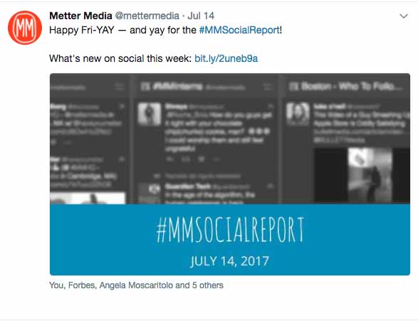 Twitter mm report_Edited Previous Next Published October 21, 2017 at 587 × 451 in Social Media Management: Metter Media Twitter post for weekly industry report